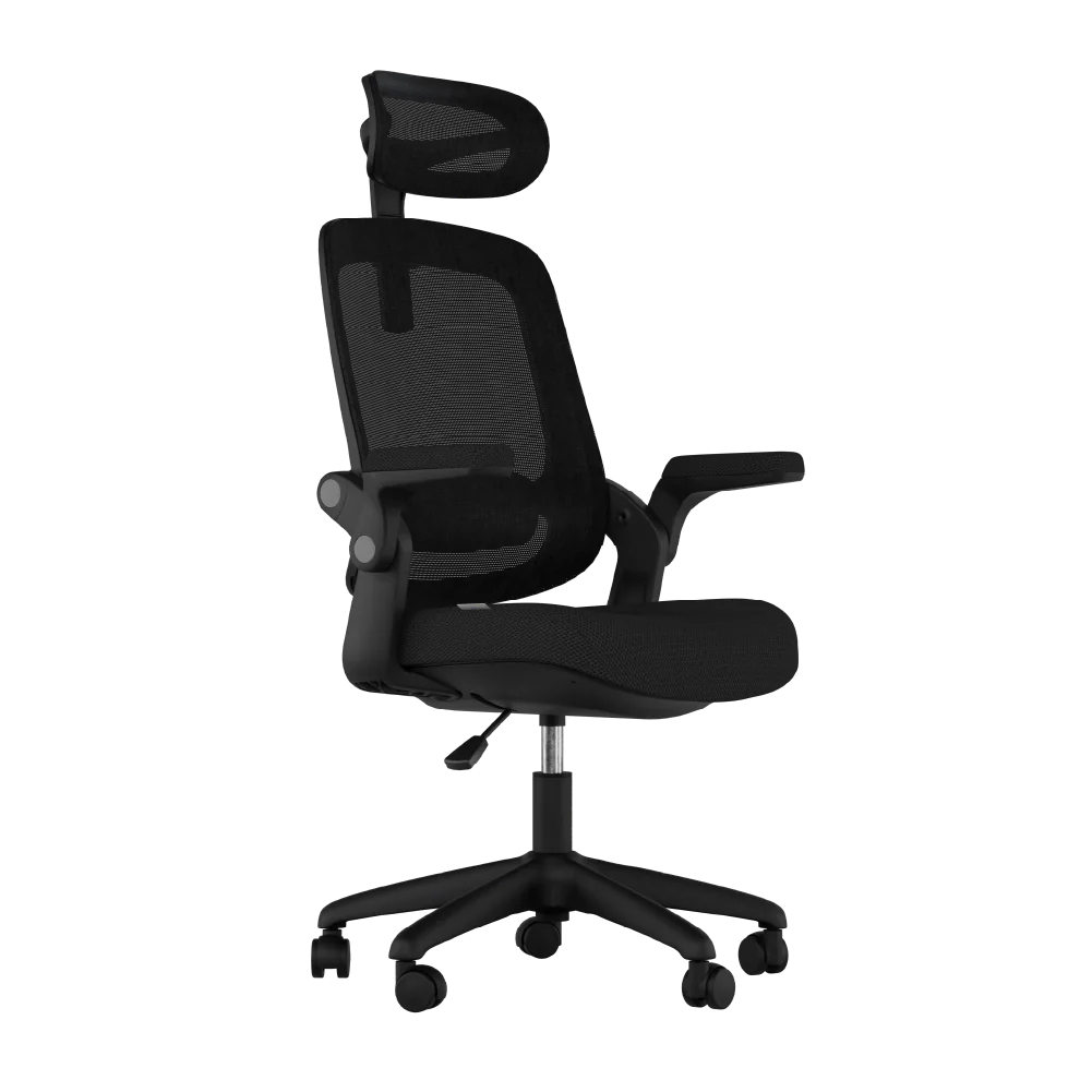 - Encosto Cervical: Apoio de cabeça em malha de tecido, com regulagem de altura para maior conforto.