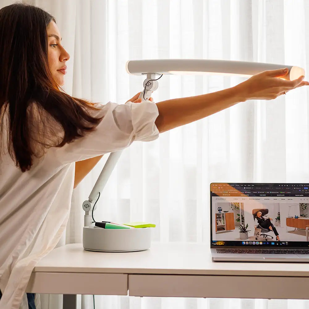 A luminária de mesa Solare ajusta a iluminação ao ciclo circadiano, alinhando-se ao ritmo natural do seu dia. Com um design elegante e formas orgânicas, ela combina funcionalidade e estética, sendo ideal para ambientes de trabalho produtivos e saudáveis. Feita com materiais de alta qualidade, oferece uma luz suave e ajustável, proporcionando bem-estar e conforto visual.