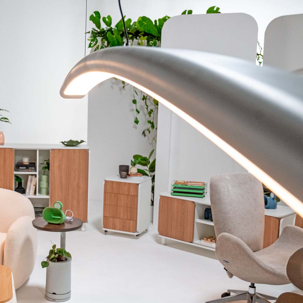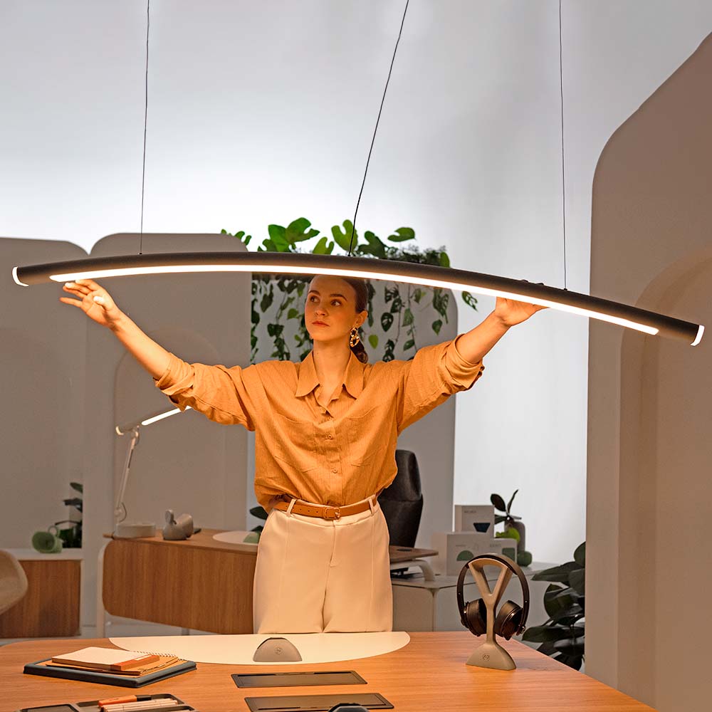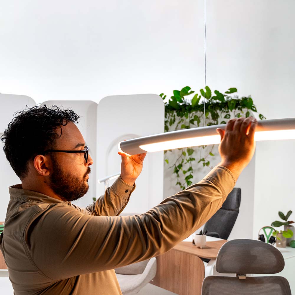 A luminária de teto Solare ilumina grandes espaços de forma uniforme e agradável, respeitando o ciclo circadiano para ajudar a manter o equilíbrio natural do corpo. Com design contemporâneo e materiais de alta qualidade, a Solare integra-se perfeitamente em qualquer decoração, sendo ideal tanto para escritórios quanto para ambientes domésticos.