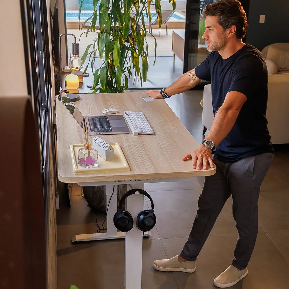 A mesa elevatória Misch PRO se destaca pela sua qualidade premium e durabilidade superior, agora equipada com 2 motores e um controlador integrado ao tampo. Esta configuração avançada permite um ajuste sincronizado da altura, proporcionando benefícios significativos para a saúde ao adaptar-se ergonomicamente às necessidades do usuário. Além disso, as opções de memorização de altura garantem praticidade e personalização, enquanto o design harmoniza perfeitamente com a estética de qualquer ambiente interior.