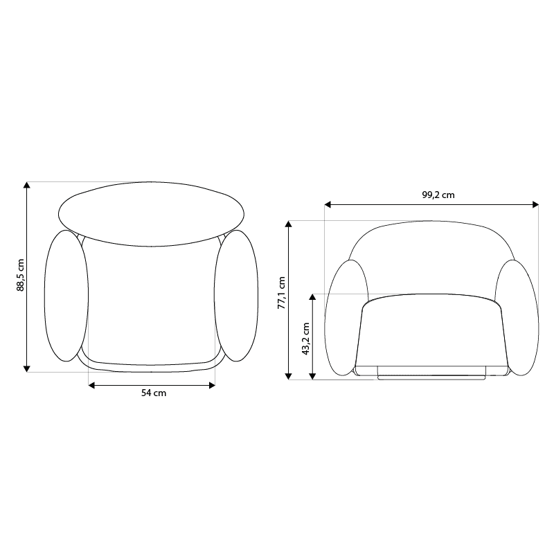 Material do Assento: Compensado com espuma laminada D24 + D28 e tecido Bouclê
